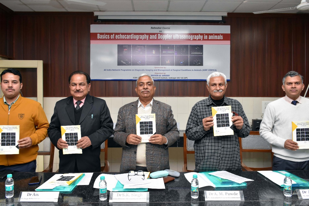 बरेली, 06 फरवरी । भारतीय पशु चिकित्सा अनुसंधान संस्थान, इज्जतनगर में इकोकार्डियोग्राफी और डॉप्लर अल्ट्रासोनोग्राफी पर 06 दिवसीय अन्तराष्ट्रीय रिफ्रेशर कोर्स का आयोजन किया जा रहा है इस कोर्स में श्रीलंका, नेपाल, कतर, तथा देश के आसाम, दिल्ली, मध्य प्रदेश, झारखण्ड, उत्तराखंड तथा उत्तर प्रदेश से आए 13 पशु चिकित्सकों तथा यूनिवर्सिटी के टीचरों ने भाग लिया । यह पाठ्यक्रम “पशुओं में निदान इमेजिंग और शल्य चिकित्सा स्थितियों के प्रबंधन पर अखिल भारतीय नेटवर्क परियोजना” (डिमस्का )के अंतर्गत चलाया जा रहा है ।
