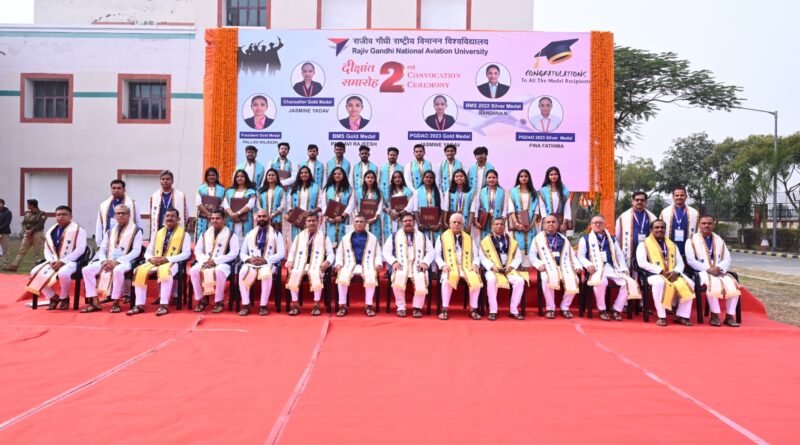 Read Moreफुरसतगंज, अमेठी: राजीव गांधी राष्ट्रीय विमानन विश्वविद्यालय (आरजीएनएयू) ने आज अपने परिसर में द्वितीय दीक्षांत समारोह एवं अंतरराष्ट्रीय नागर विमानन