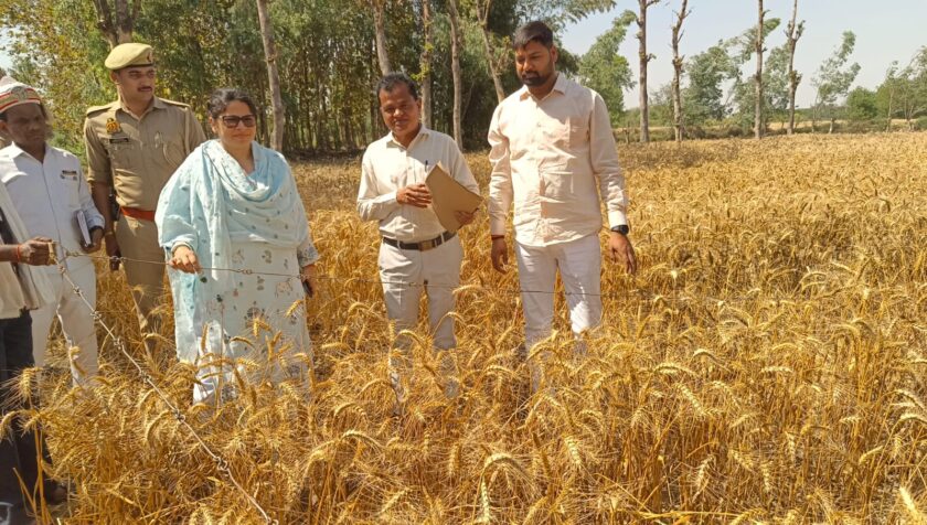 गेहूँ की पैदावार का आकलन हेतु जिलाधिकारी द्वारा ग्राम पिपरा बाजार में कराई गई क्रॉप कटिंग