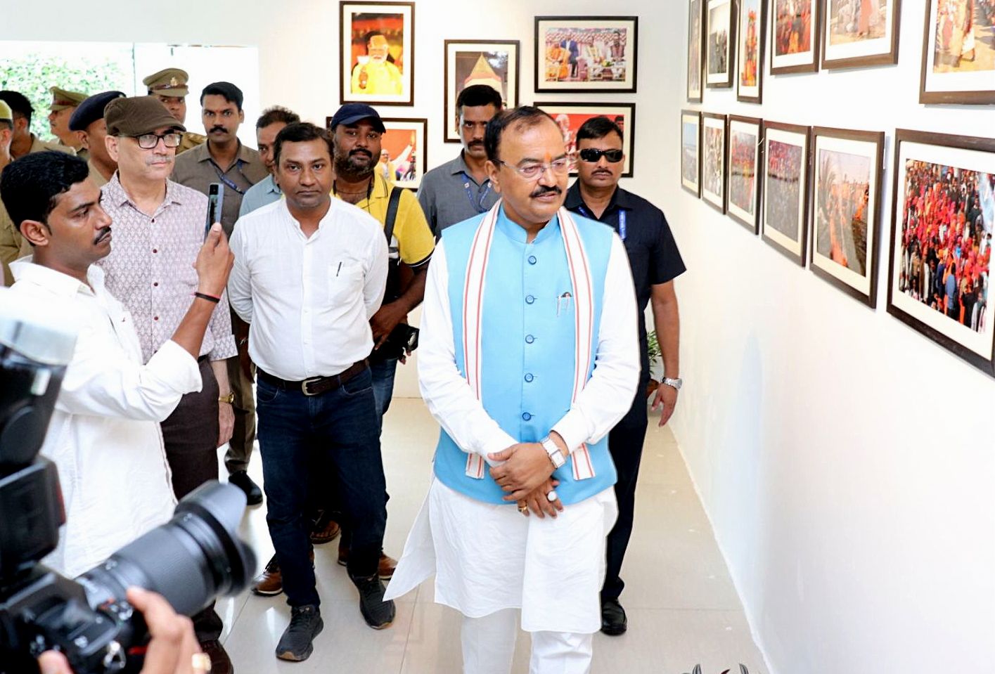 दी यूथ फोटो जर्नलिस्ट एसोसिएशन की ओर से आयोजित की गई फोटो प्रदर्शनी का उत्तर प्रदेश के डिप्टी सीएम केशव प्रसाद मौर्य ने फीता काटकर उद्घाटन किया। प्रदर्शनी स्थल पर पहुंचते ही केशव प्रसाद मौर्य की नजर सबसे पहले अपनी ही तस्वीर पर पड़ी, जिसे देखकर उनके मुंह से मुस्कुराते हुए वाह निकला। उन्होंने पूरे हॉल में घूम-घूम कर एक-एक तस्वीर को बड़ी ही बारीकी से ठहरकर देखा। उन्होंने पत्रकारिता जगत से जुड़े फोटोग्राफर्स की तस्वीरों को चिन्हित करते हुए कहा कि आप लोग बहुत परिश्रम करते हैं। ऐसी तस्वीरें खींचना बेहद मुश्किल होता है। फील्ड पर रहकर छायाकार एक-एक तस्वीर को अपने कमरे में कैद करने के लिए कितना संघर्ष करते हैं, वह इस फोटो प्रदर्शनी में साफ-साफ दिखाई देता है। केशव प्रसाद मौर्य ने कहा कि उत्तर प्रदेश सरकार हमेशा आपके साथ है, इसके साथ ही उन्होंने अपने निर्धारित कार्यक्रम से वापस लौटकर दोबारा इस प्रदर्शनी में आने का आश्वासन दिया।