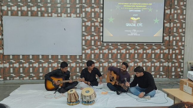 बरेली,05 दिसम्बर। रूहेलखण्ड विश्वविद्यालय परिसर में कल CSIT विभाग के Captivators club द्वारा गजल संध्या का आयोजन किया गया, जिसमें छात्र छात्राओं ने उत्साहपूर्वक प्रतिभाग किया।