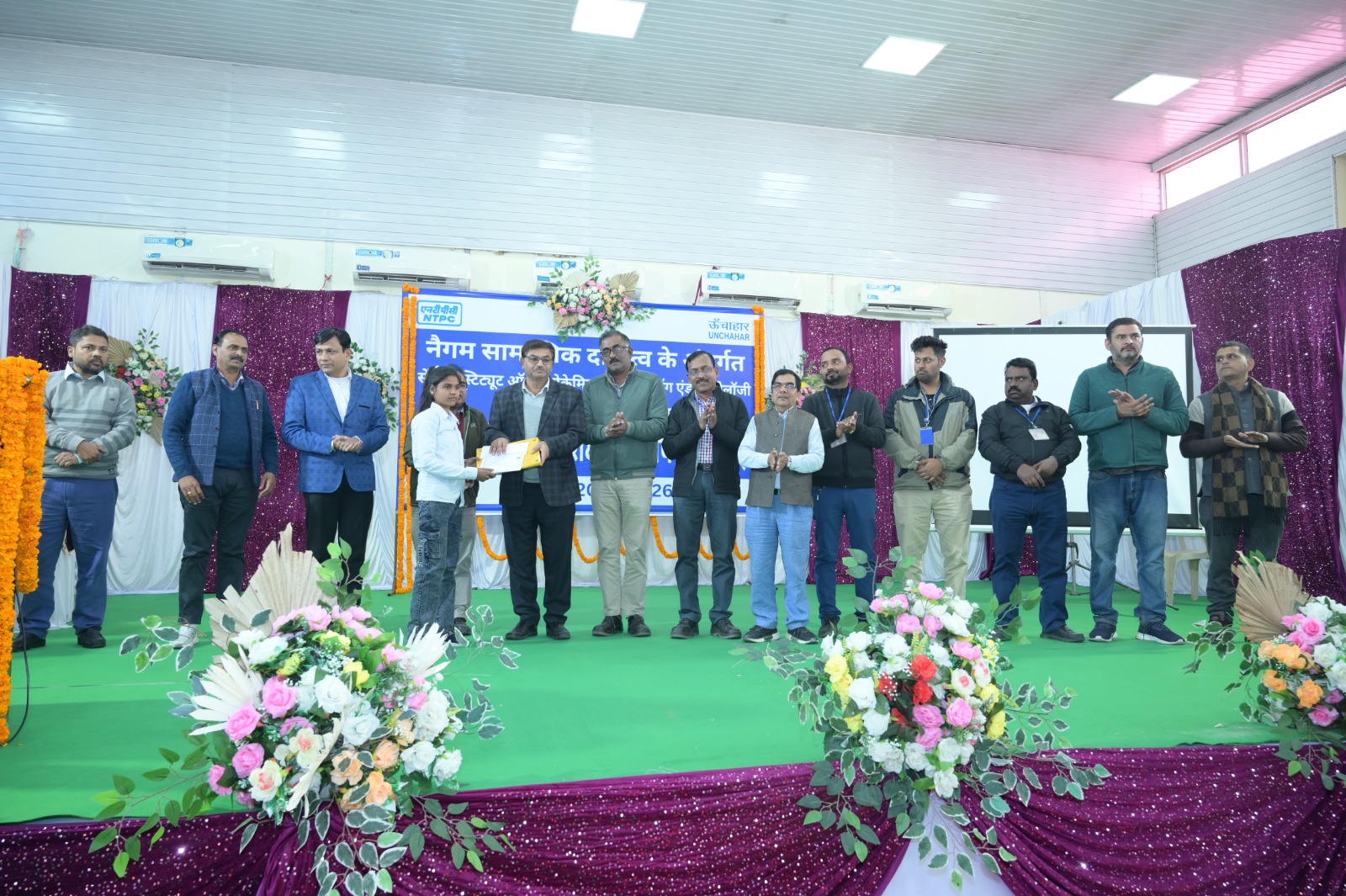 प्रशिक्षण प्रमाण पत्र एवं ऑफर लेटर प्रदान करने हेतु एनटीपीसी ऊँचाहार में एक समारोह का आयोजन किया गया। इस अवसर पर परियोजना प्रमुख श्री बिश्व मोहन सिंह, अन्य महाप्रबंधकगण, विभागाध्यक्ष, यूनियन एवं एसोसिएशन के अध्यक्ष तथा संबंधित ग्राम प्रधानों की गरिमामयी उपस्थिति में लाभार्थियों को ऑफर लेटर प्रदान किए गए, जिससे उनके उज्ज्वल भविष्य और आत्मनिर्भर जीवन को नई दिशा मिली।