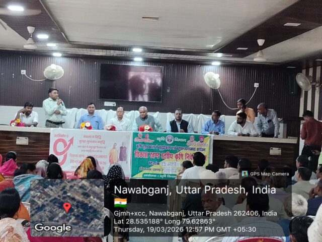 बरेली, 20 मार्च। प्रदेश सरकार के नव निर्माण के 9 वर्ष पूर्ण होने पर और केंद्र सरकार के 11 वर्ष पूर्ण होने पर योजनाओं एवं उपलब्धियां पर आधारित कृषि मेला/ प्रदर्शनी विकासखंड नवाबगंज स्थित सभागार में कार्यक्रम का आयोजन किया गया। कार्यक्रम का शुभारम्भ मुख्य अतिथि माननीय सांसद छत्रपाल गंगवार तथा मा0 विधायक नवाबगंज डॉ0 एम0पी0 आर्य की गरिमामयी उपस्थिति में किया गया।