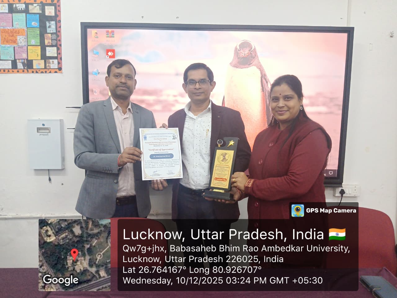 बाबासाहेब भीमराव अम्बेडकर विश्वविद्यालय में सांख्यिकी विभाग की ओर से ‘ अनुसंधान पद्धति और सांख्यिकी तकनीकों का उपयोग – डेटा से निर्णय तक’ विषय पर आयोजित पांच दिवसीय कार्यशाला में पैरामैट्रिक एवं नॉन पैरामैट्रिक परीक्षण विषय पर विशेष व्याख्यान सत्र का आयोजन किया गया। मुख्य वक्ता के तौर पर डॉ. अमित कुमार मिश्रा, डॉ. सुभाष कुमार यादव एवं कार्यक्रम संयोजक डॉ. राहुल वार्ष्णेय उपस्थित रहे।