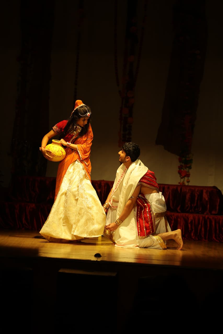 बरेली,12जनवरी। एसआरएमएस रिद्धिमा के सभागार में रविवार को दिल्ली के रूबरू थियेटर ग्रुप की ओर से नाटक अभिज्ञान शाकुंतलम का मंचन किया गया। महाकवि कालिदास लिखित इस नाटक की परिकल्पना और निर्देशन काजल सूरी का रहा। महाकवि कालिदास लिखित अभिज्ञान अभिज्ञान शाकुन्तलम चौथी शताब्दी के आसपास की रचना है, लेकिन इसकी कथा महाभारत काल से भी पहले की है। महाकाव्य महाभारत के आदि पर्व में दुष्यंत और शाकुन्तला की इस कथा का उल्लेख है। इसके अलावा हमारे 18 पुराणों में से एक पद्म पुराण में भी यह दर्ज़ है। इस कथा को अभिज्ञान शाकुंतलम ग्रंथ के रूप में रचने का श्रेय महाकवि कालिदास को जाता है। मूलतः यह रचना संस्कृत भाषा में है, लेकिन विश्व की लगभग सभी भाषाओं में इसका अनुवाद हो चुका है। इस नाटक के साथ विशेष बात यह है कि यह भारत का नाटक है, जो विदेशी धरती पर मंचित किया गया था। अभिज्ञान शाकुंतलम कालिदास की पहली कृति थी जिसका अंग्रेजी में अनुवाद किया गया। इस अंग्रेजी अनुवाद पर आधारित जर्मन अनुवाद (1791 ई. में प्रकाशित) की गोएथे ने इतनी प्रशंसा की कि यह पूरी दुनिया में प्रसिद्ध हो गया। सहज सौंदर्य साधनों की अपेक्षा नहीं करता, वह अपने आप में सहज सरल और प्राकृतिक रूप से संपन्न है। इस नाटक का केंद्रीय भाव है। अभिज्ञान शाकुंतलम में राजा दुष्यन्त और शाकुन्तला के प्रणय, विवाह, विरह तथा पुनर्मिलन की एक सुन्दर कथा है। संक्षिप्त कथा इस तरह है। शाकुन्तला राजा दुष्यन्त की पत्नी थी, जो भारत के सुप्रसिद्ध राजा भरत की माता और मेनका अप्सरा की कन्या थी। महाभारत के अनुसार शाकुन्तला का जन्म मेनका अप्सरा के गर्भ से हुआ था, जो उसे वन में छोड़कर चली गई। वन में शंकुतों (पक्षियों) आदि ने हिंसक पशुओं से इसकी रक्षा की थी, इसी से इसका नाम शाकुन्तला पड़ा। राजा दुष्यंत एक शिकार यात्रा के दौरान शाकुन्तला से मिलते हैं और दोनों एक दूसरे के प्रति आसक्त हो उठते हैं। जब दुष्यन्त अपने राज्य में लौटने के लिए प्रस्थान करता है, तो शाकुन्तला का हृदय टूट जाता है। कुछ समय बाद वह अपने पुत्र भरत को जन्म देती है। अंततः दुष्यन्त को शाकुन्तला के प्रति अपने प्रेम की याद आती है और वह उसे तथा अपने बच्चे को खोजने के लिए जंगल में लौट आता है और नाटक उनके पुनर्मिलन तथा मेल-मिलाप के साथ समाप्त होता है। कालिदास की काव्य प्रतिभा ने उसे साहित्य में अमर बना दिया। नाटक में शुभम शर्मा, तरुण मग्गो, सुजाता जैन, तनीषा गांधी, गीता सेठी, राशि, कृष बब्बर, अपूर्व, भूपेश, प्रवीण यादव ने अपनी भूमिकाओं के साथ न्याय किया। नाटक में मेकअप राशिद और संगीत संचालन प्रवीण और शुभम का रहा। मंच के पीछे की ज़िम्मेदारी कपिल ने संभाली और प्रोडक्शन मैनेजर रोहित कुमार का रहा। इस अवसर पर एसआरएमएस ट्रस्