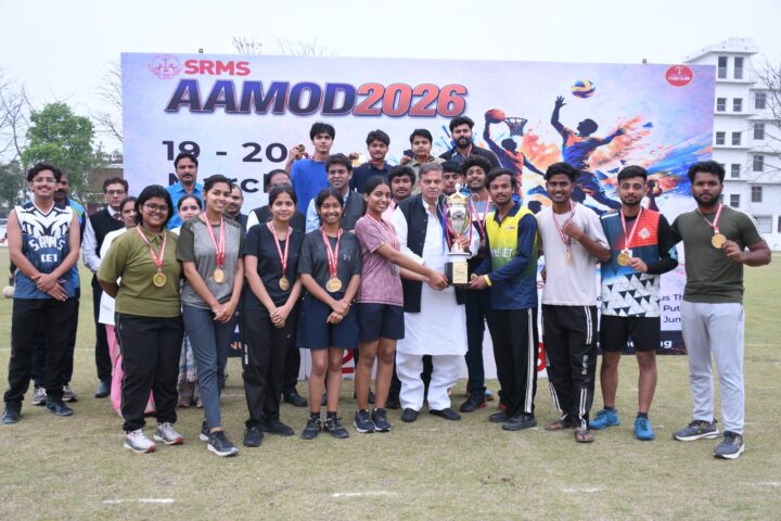 एसआरएमएस कॉलेज ऑफ इंजीनियरिंग एंड टेक्नोलॉजी (एसआरएमएस सीईटी) स्थित फुटबॉल ग्राउंड में गुरुवार (19 मार्च 2026) को आमोद 2026 का उद्घाटन गुड लाइफ हॉस्पिटल की डायरेक्टर ऋचा मूर्ति ने किया था। एसआरएमएस ट्रस्ट द्वारा संचालित सीईटी, सीईटीआर, मेडिकल, पैरामेडिकल, नर्सिंग के विद्यार्थियों ने बालक और बालिका वर्ग में आयोजित आमोद 2026 की बैडमिंटन, फुटबाल, बास्केटबाल, शतरंज, खो-खो, टेबल टेनिस, वालीबाल, कैरम, कबड्डी के साथ एथलेटिक्स की 17 स्पर्धाओं में हिस्सा लिया। दो दिन के खेल के बाद शाम को पुरस्कार वितरण के साथ आमोद 2026 का समापन हुआ। सभी स्पर्धाओं में 14 गोल्ड, 8 सिल्वर और 3 ब्रांज मेडल सहित कुल 25 मेडल हासिल करने पर एसआरएमएस सीईटी को आमोद 2026 का चैंपियन घोषित किया गया। एसआरएमएस आईएमएस ने 11 गोल्ड, 15 सिल्वर और 3 ब्रांज मेडल हासिल किए। प्रतियोगिता में लंबी कूद स्पर्धा के बालिका वर्ग का रिजल्ट घोषित नहीं किया गया। पुरस्कार वितरण समारोह में एसआरएमएस ट्रस्ट एडवाइजर इंजीनियर सुभाष मेहरा, सीईटी के प्रिंसिपल डा. प्रभाकर गुप्ता, सीईटीआर के डीन डा.शैलेश सक्सेना, आईपीएस की प्रिंसिपल डा.जसप्रीत कौर, नर्सिंग कालेज की प्रिंसिपल डा.मुथु महेश्वरी, मेडिकल कॉलेज के डा.एमएस बुटोला, प्लेसमेंट सेल के डायरेक्टर डा.अनुज कुमार, फार्मेसी विभाग के डीन डा. अमित कुमार शर्मा, डीन स्टूडेंट वेलफेयर डा. सौरभ गुप्ता, चीफ प्राक्टर इंजीनियर विवेक यादव, कोच नितिन सक्सेना, कोच अनुज शर्मा, कोच युसुफ अंसारी, कोच शंकरपाल मौजूद रहे। बरेली से अखिलेश चन्द्र सक्सेना की रिपोर्ट