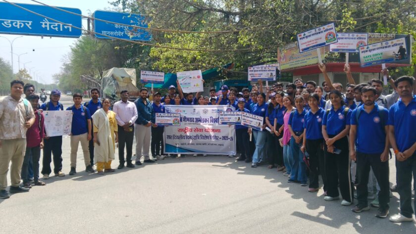 बाबासाहेब भीमराव अम्बेडकर विश्वविद्यालय में आयोजित सात दिवसीय विशेष शिविर के अंतर्गत विद्यार्थियों ने सड़क सुरक्षा अभियान के माध्यम से लोगों को किया जागरूक
