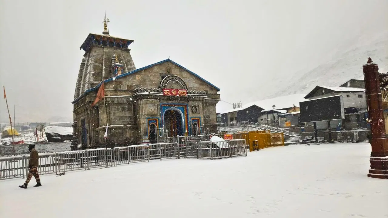 केदारनाथ धाम में सुबह से जारी बर्फबारी